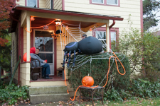 My favorite event of the year is Halloween and without a house our good friends Linda and Allen allowed me to decorate theirs. Allan and I sat under the spider to hand out treats and with any loud noise the black and orange spider hanging in the corner would shake, screech, and flash his eyes, Scary!