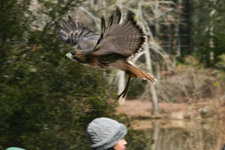 It is a real thrill to see these birds launch from a handler, fly past at knee height within touching distance, and land on another perch.