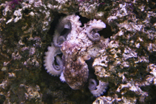 Saving the best for last the Octopus is far and away Lori's favorite. This one mostly stayed curled up in the rocks, but if you stood close it would climb down and tap on the glass hoping to get to know you better, or just get a taste. Unfortunately an octopus is very intelligent but very short lived and rarely last more that about five years even in captivity.
